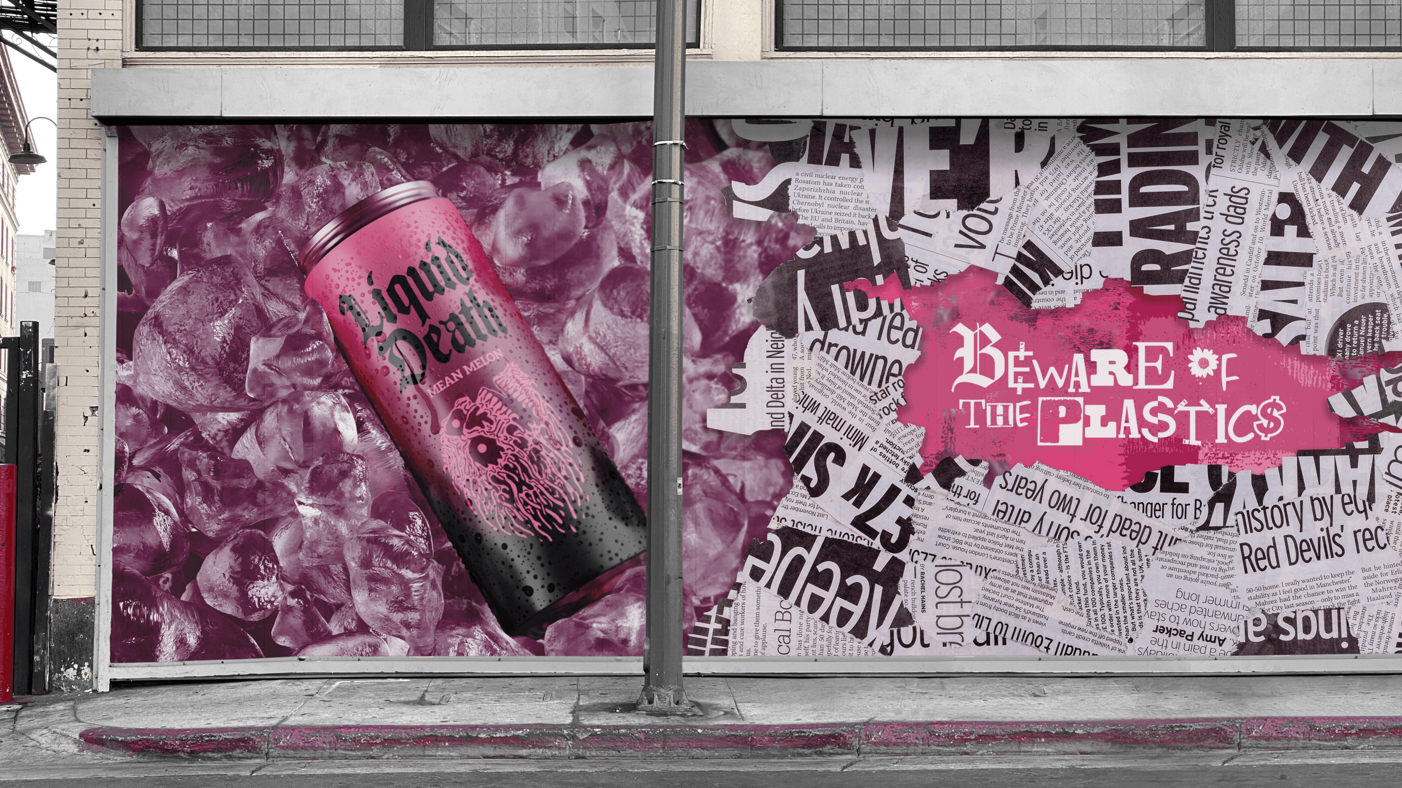 For a Liquid Death pitch, I partnered with copywriter John Irby to take on Big Plastic the only way that felt appropriate: by bullying it. We launched three limited-edition flavors - Mean Melon, Glenn Coconut, and Too Grape to Function - timed to drop on October 3rd (yes, that October 3rd). The campaign extended across OOH, social, and product, turning a cultural moment into a coordinated brand attack.